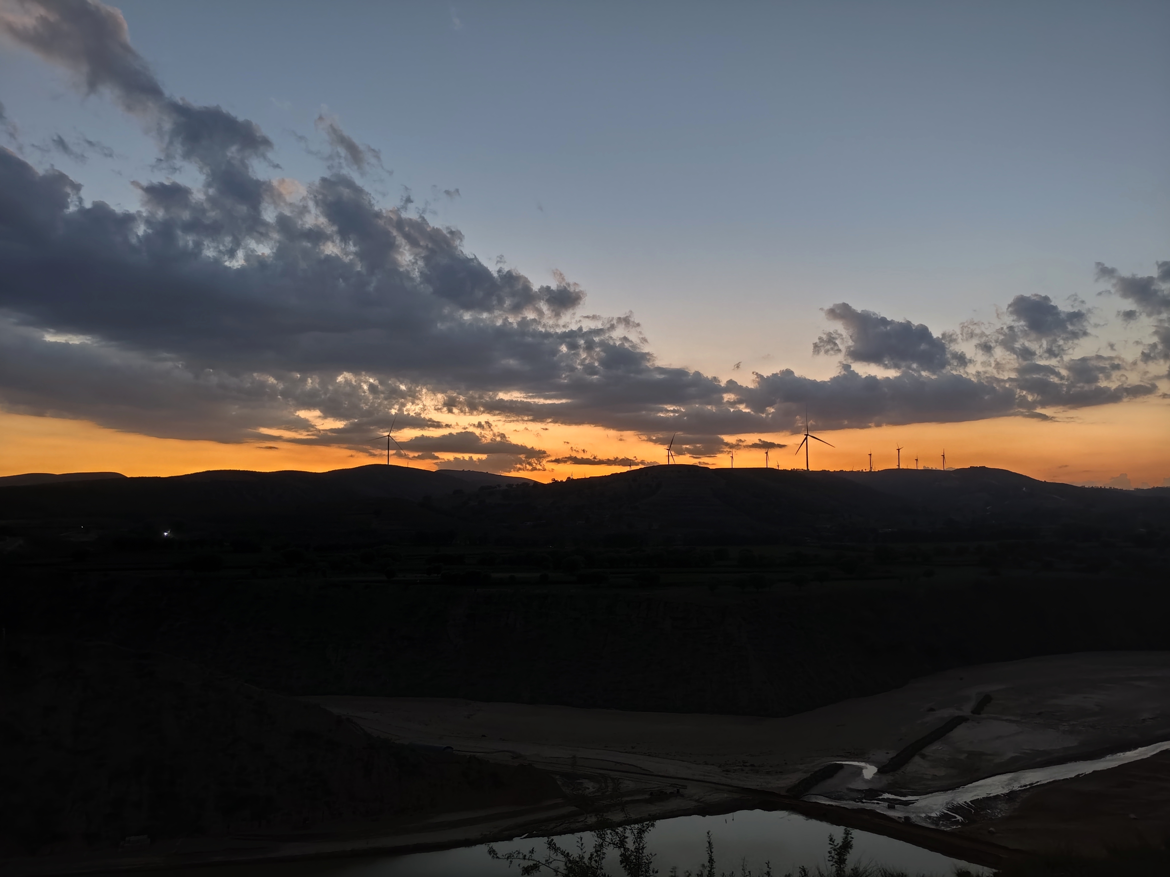 當最后一縷夕陽的金輝掠過黃土高原的溝壑,陜北的傍晚便在風與云的協奏中,緩緩拉開了一幅雄渾又細膩的畫卷。來到項目已有兩月,看慣了白日里工地的機械轟鳴,卻獨獨為這暮色中的天地心折。 天際是大自然最慷慨的調色盤。從地平線向上,橙黃如熔金的晚霞漸次暈染開,與灰藍的天穹交織出溫柔的過渡。大片的云絮被晚風梳理著,有的如棉垛堆疊,沉甸甸地墜在半空;有的似輕紗曼舞,在余暉里透出銀灰的輪廓。那些矗立的風機在遠山的剪影里緩緩轉動,在夕陽下勾勒出遒勁的線條。 腳下河道的水流,此時也斂去了白日的粼粼波光,化作一方鏡面,將天空的橙與云的影,都悄無聲息地收納其中。岸邊裸露出黃土的原色,與遠處深邃的溝壑連成一片,那是黃土高原千百年水土交融的印記,溝壑縱橫間,藏著時光沖刷的故事。偶有幾株頑強的草木,于暮色中探出模糊的枝椏,為這深沉的黃褐添了一絲倔強的生機。 風從高原深處吹來,帶著黃土的質樸氣息,掠過耳畔時,仿佛能聽見這片土地的呼吸。它吹過風機的葉片,發(fā)出低沉的嗡鳴;它掠過水庫的水面,漾起細碎的漣漪;它拂過我的臉頰,帶來兩個月以來與這片土地相擁的熟悉感。 從最初對黃土漫天的陌生,到如今對這暮色風光的眷戀,我漸漸讀懂了陜北的美,它不似江南水鄉(xiāng)的婉約,也不具名山大川的巍峨,卻有著黃土高原獨有的雄渾與厚重。在項目部的日子,白天是建設者的忙碌,傍晚是大自然畫卷般的饋贈,一剛一柔,在這片土地上奇妙地共生。 看著夕陽徹底沉入遠山,天際的橙紅慢慢褪成黛青,風機的輪廓在夜色中愈發(fā)清晰,河道的水面也溶進了墨色的懷抱。我知道,這樣的暮色,還將在往后的日子里,一次次為我鋪展。而我與黃土高原的故事,也將在這風與云、光與影的交替中,繼續(xù)書寫下去。
