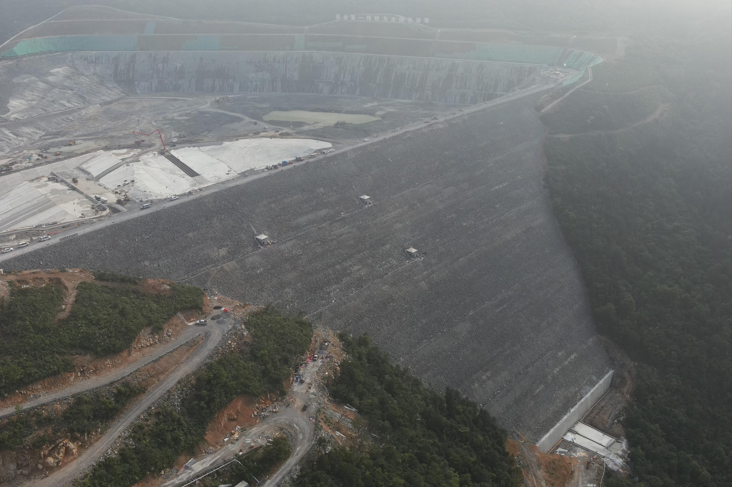 5月30日,水電十二局承建的世界最高水頭抽蓄電站——浙江天臺抽水蓄能電站上水庫順利通過蓄水驗收,為沖刺首臺機組投產發(fā)電目標奠定堅實基礎。 浙江省發(fā)展和改革委員會、能源局組織有關單位及專家組成驗收委員會,聽取建設單位、設計單位等關于上水庫工程蓄水驗收相關情況的匯報,相關單位通報了質量監(jiān)督、安全鑒定、移民專項驗收和技術預驗收等前置工作相關結論。經(jīng)過嚴格審查和討論,驗收委員會形成了上水庫工程蓄水驗收鑒定意見,一致認為,電站上水庫蓄水前的各項建設任務已基本完成,相關前置條件均已具備,符合有關要求,同意通過蓄水驗收。 天臺抽水蓄能電站是國家《抽水蓄能中長期發(fā)展規(guī)劃(2021-2035年)》“十四五”重點實施項目,位于臺州市天臺縣,建設過程中將刷新多項世界紀錄和國內紀錄。其中,電站額定水頭724米,為世界最高;單機容量42.5萬千瓦,位居國內之首;上下引水斜井長度483.4米,為國內最長單級斜井。 在上水庫主壩面板施工中,項目團隊創(chuàng)新采用低熱水泥混凝土,配合比中加入了水電十二局自主研發(fā)的VF防裂劑和玄武巖纖維,施工過程中嚴格控制混凝土入倉塌落度和滑模提升速度,在保證面板混凝土施工質量的同時,有效增強了面板抗裂性能,成功打造了“無縫”面板,這也是低熱水泥混凝土+雙摻工藝在抽水蓄能行業(yè)內的首次應用。 自2022年5月開工建設以來,面對工期緊、任務重、地質條件復雜、施工難度極大等諸多困難和挑戰(zhàn),項目部加強組織建設、強化統(tǒng)籌協(xié)調、注重精細管理,成立“黨員先鋒隊”“青年突擊隊”,充分發(fā)揮黨工團組織的引領作用和黨員先鋒模范作用,圍繞“建功十四五 奮進新征程”開展立功勞動競賽,極大地激發(fā)了員工的積極性、主動性、創(chuàng)造性,掀起抓安全、守質量、保履約的大干高潮,先后按期或提前完成了上下引水斜井擴挖支護、大壩填筑、副壩防滲墻、主壩面板澆筑等多個重大節(jié)點目標,以實干實績不斷刷新“天臺速度”。項目部先后榮獲集團公司2022~2023年度“先進基層黨組織”、浙江省2022~2023年度“青年文明號”和“智慧安全優(yōu)勝工地”、浙江省省部屬企事業(yè)2024年度“工人先鋒號”等多項榮譽,進一步彰顯了公司在抽水蓄能電站領域的強大實力和品牌形象。 電站總裝機容量170萬千瓦,建成后預計年發(fā)電量17億千瓦時,可節(jié)約燃煤約52萬噸,減排二氧化碳約104萬噸,對于優(yōu)化電源結構、提高電網(wǎng)安全穩(wěn)定運行能力、實現(xiàn)“雙碳”目標具有重要意義。電站投用后,將承擔浙江電網(wǎng)的調峰、填谷、調頻、調相、儲能及緊急事故備用等任務,并為華東電網(wǎng)提供靈活調度能力。